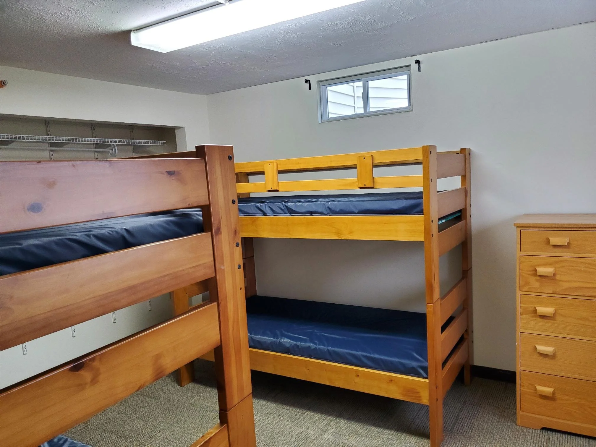 This is a 1,200 sq ft bunkhouse next to Noe that has six bedrooms each with two sets of bunkbeds and a community bath. Often, Noe and Westfall are used together for larger groups to accommodate males and females in different buildings.